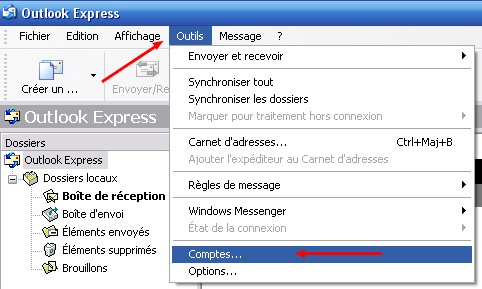 • Lancer Outlook Express, puis cliquer sur "Outils", "Comptes".