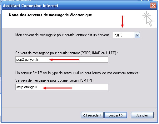 • Dans "Serveur de messagerie pour courrier entrant", saisir "mail.ac-lyon.fr",