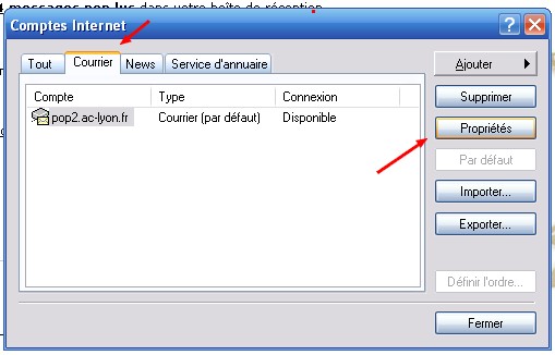 • Retourner ensuite dans "Outils", "Comptes", et là choisir "Courrier", Propriétés".