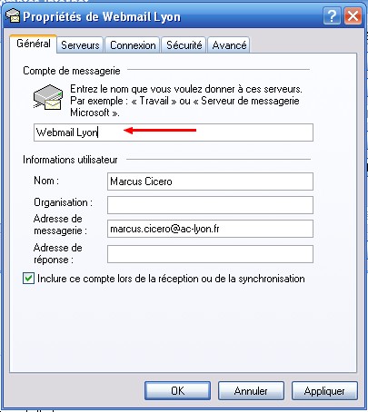 • Dans "Général", vous pouvez modifier à votre guise le nom du compte de messagerie.