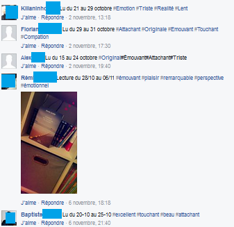 – la question des élèves qui n’ont pas de compte Facebook. Ils ont été autorisés à publier les commentaires via les comptes de camarades en précisant leurs noms.