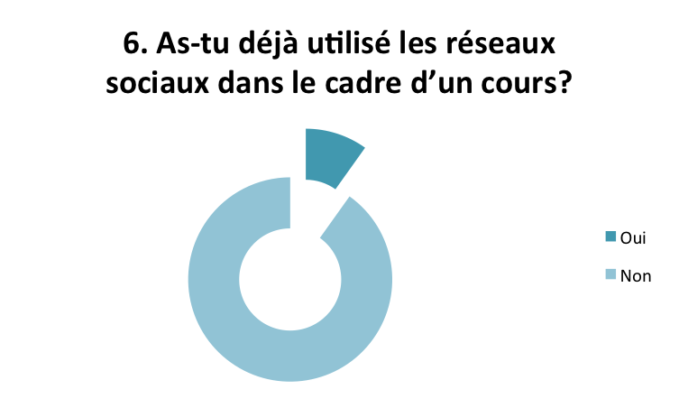 Les réseaux sociaux s’avèrent être très peu exploités dans le cadre du cours. Moins de 10% des élèves disent y avoir eu recours, dont 15,3% en lycée et 4,8% en collège.