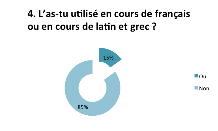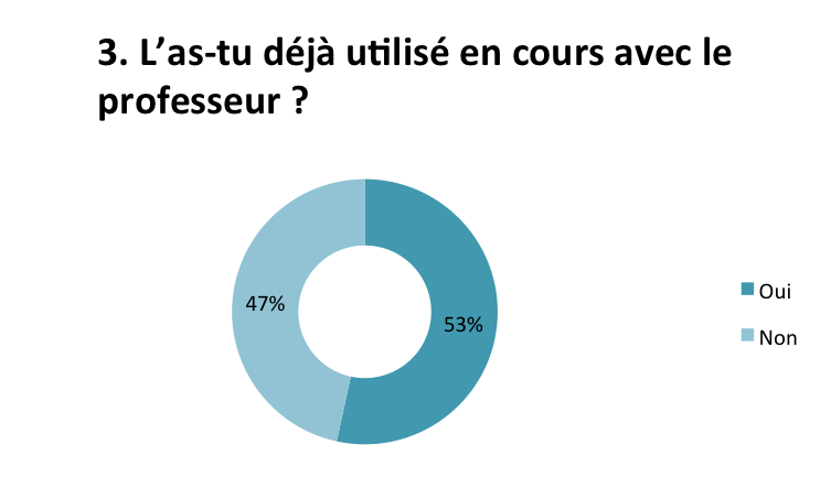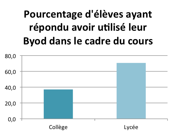 Sur l’ensemble des élèves interrogés, seule la moitié a déjà utilisé son matériel numérique en classe (70,7% des élèves interrogés de lycée, 37,1% de collège) et très peu en cours de lettres.