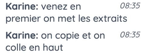 En effet, s’il est, certes, possible d’effectuer une relecture et des modifications sur papier, ces dernières rendent le texte peu lisible et ne peuvent être réalisées qu’un certain nombre de fois. Or, sur Framapad, les élèves modifient régulièrement l’ordre des paragraphes, des citations choisies, en pensant à l’auditeur : ils pensent en termes de « suspense », de « rythme » et de « dureté » des expériences personnelles, en d’autres termes ils cherchent une cohérence, mais aussi une gradation dans l’émotion qu’ils sont capables de transmettre.